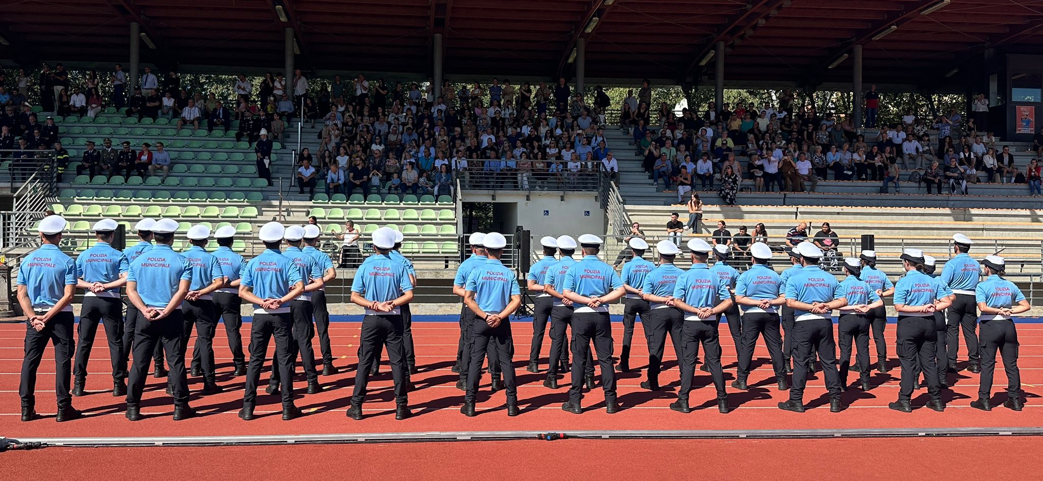 Durante la cerimonia anche un simbolico passaggio di consegne: il sovrintendente scelto Agostino Muscioni, prossimo pensionando, ha consegnato la placca di riconoscimento all’agente Evelina Moretti, la più giovane del corso, in rappresentanza di tutti i nuovi assunti.