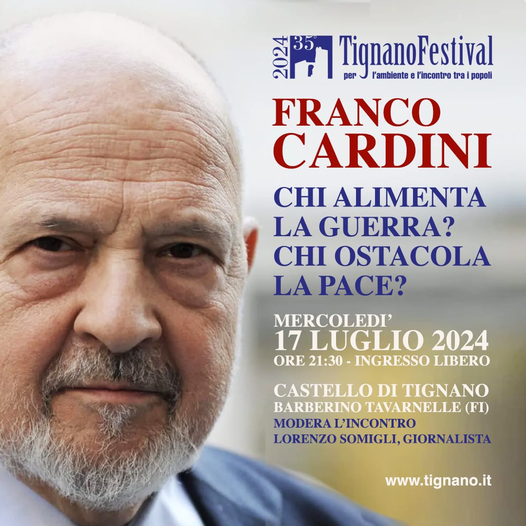 "Guerra, guerra, guerra". Sembra questo il vero motto del nostro tempo, tra un'industria bellica che tocca nuovi picchi e una retorica già inquinata. Eppure dovremmo sapere bene cosa significa la guerra. E allora è uno sforzo di consapevolezza, un impegno da buoni cives mantenere viva la speranza della pace. Ne parlerà uno dei massimi storici italiani, Franco Cardini, che torna al Tignano Festival mercoledì 17 luglio alle 21.30. Modera l’incontro il giornalista Lorenzo Somigli.