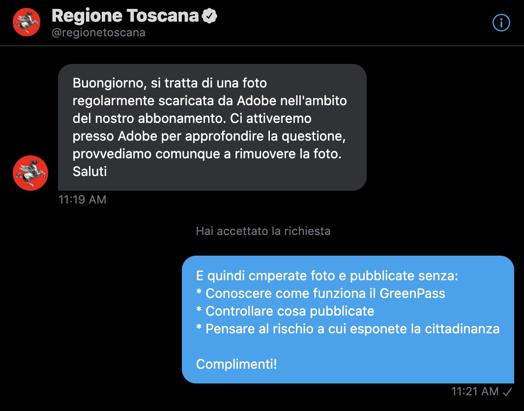 Il paese sconta i limiti di cultura informatica accumulati in 40 anni e che adesso diventano un fattore di pericolo. Proprio stamani l'esperto e docente informatico Matteo G.P. Flora, dal suo account Twitter, ha fatto notare alla Regione Toscana che pubblicare on line la foto del Qr code di un Green pass non è cosa intelligente, senza prima aver verificato che non si tratti di un certificato autentico, che potrebbe essere copiato e utilizzato illegalmente.