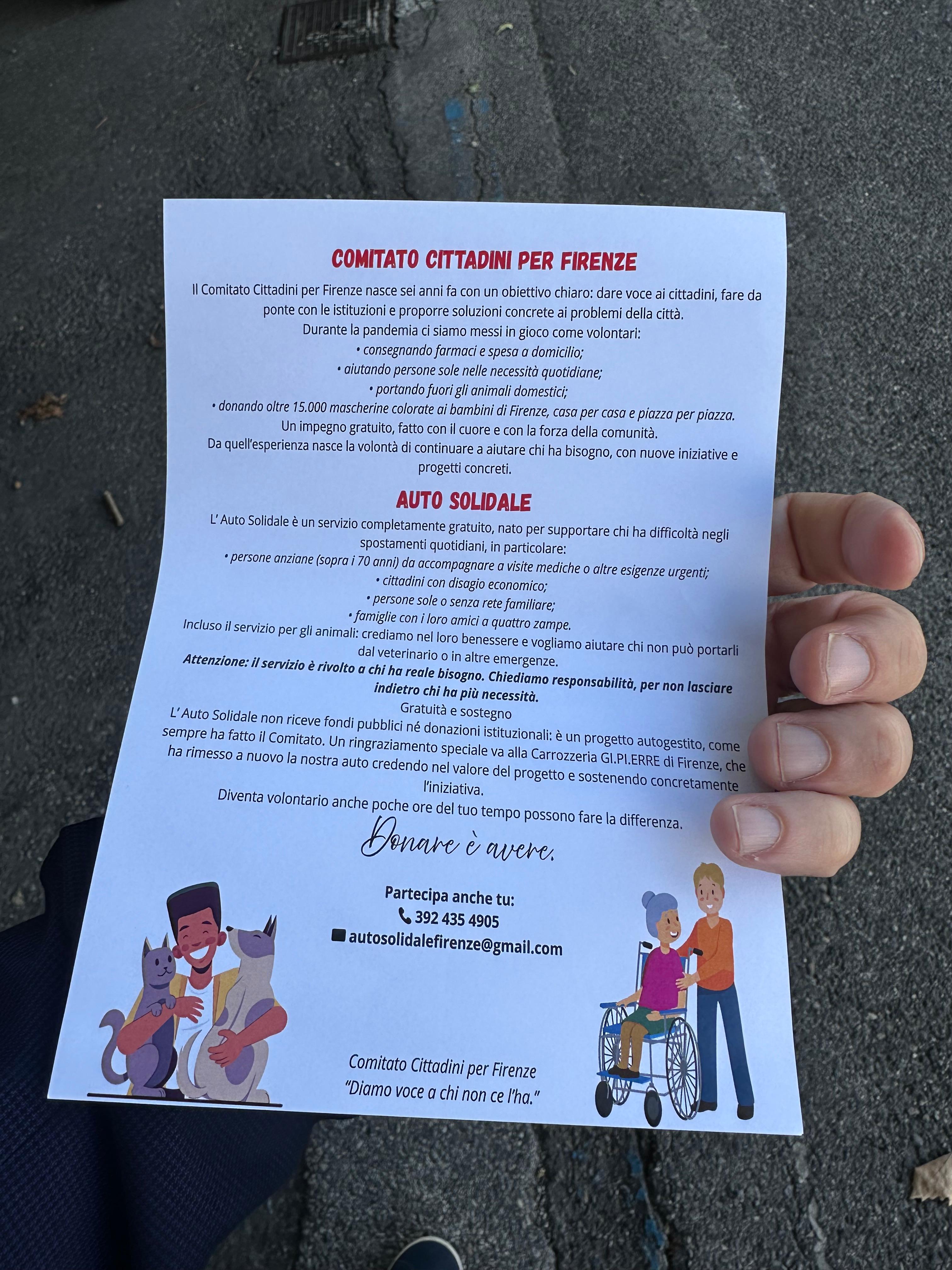 Curiosità a Firenze per la nascita del progetto Auto solidale, un’iniziativa unica nel suo genere, nata per dare un aiuto concreto ai cittadini più fragili.
