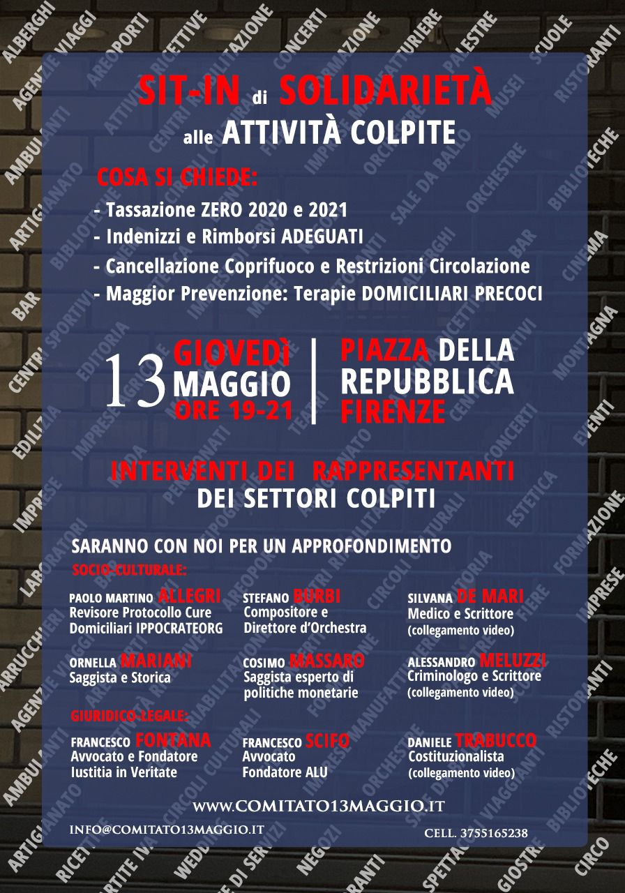 Il monitoraggio di venerdì 14 dovrebbe dare maggiori dettagli sulla revisione del divieto di circolazione notturna. Probabile lo spostamento alle 23:00, grazie alle pressioni del centrodestra sul Governo. Intanto si annuncia una manifestazione organizzata dal comitato 13 Maggio in Piazza Repubblica a Firenze.