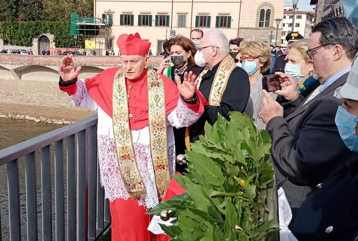 Una cerimonia solenne, accompagnata da un vento deciso quella che poco fa ha visto il fiume Arno essere benedetto dal Cardinale Ernst Simoni.