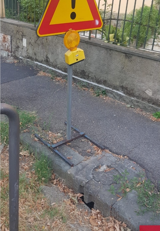 “Nel tratto tra via Starnina ed il boschetto sul lato destro, seguendo il senso di marcia, le condizioni dei marciapiedi, delle caditoie e del manto stradale presentano situazioni indecorose se non pericolose”.
