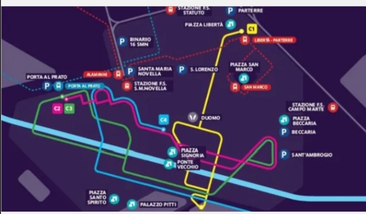 In dettaglio le linee interessate sono la C1 (Parterre-Santa Maria Soprarno passando per via Cavour, via Roma, via del Proconsolo, Uffizi), C2 (piazza Beccaria-Leopolda toccando la stazione SMN, via Roma, via Ghibellina, piazza Annigoni), C3 (Leopolda Porta a Prato-piazza Beccaria con fermate anche in piazza d’Ognissanti, Santo Spirito, Pitti, via dei Bardi, via Verdi, piazza Annigoni) e C4 (Santa Maria Maggiore-ex IOT Palagi passando da piazza dell’Unità Italiana, via Curtatone, San Frediano, Santo Spirito, Pitti, i lungarni Torrigiani, Serristori, Cellini fino ad arrivare in viale Michelangiolo).