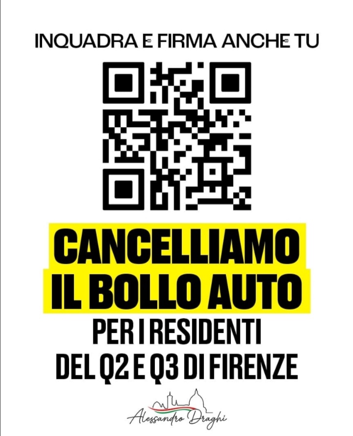 “A seguito dei disagi derivanti dalla cantierizzazione della tramvia, si chiede alla Regione Toscana di attivare le procedure per la sospensione dell'obbligo di pagamento del bollo auto per gli anni 2025 e 2026 per i residenti nei Quartieri 2 e 3 del Comune di Firenze e dei proprietari o fruitori dei veicoli iscritti al PRA (Pubblico Registro Automobilistico)”. Questa la richiesta contenuta nella raccolta firme, che parte da oggi on line su proposta di Fratelli d’Italia.