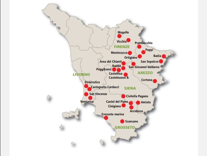 Se le aeree sono 405 in totale nel Paese, nel centro-nord sono 211, oltre la metà, e ben 82 solo per quanto riguarda il centro Italia, confermando i dati sulla percentuale di lavoro irregolare del VI Rapporto. In Toscana le aree di sofferenza mappate sono ben 27, concentrandosi più nella zona Sud della Regione. In provincia di Arezzo San Giovanni Valdarno, Valtiberina (Cortona, Sansepolcro, Badia), Valdarno Casentino (Poppi, Pratovecchio, Ortignano); in provincia di Firenze il Mugello; in provincia di Grosseto la zona dell'Amiata, Arcidosso, Marina di Grosseto, Scansano, Civitella Paganico, Cinigiano, Castel del Piano; in provincia di Livorno Venturina, San Vincenzo, Castagneto Carducci, Donoratico; in provincia di Siena l'area del Chianti, Castellina, Montecucco, Poggibonsi, Radda, Castelnuovo Berardenga. Queste sono solo alcune delle 27 aree mappate in Toscana.