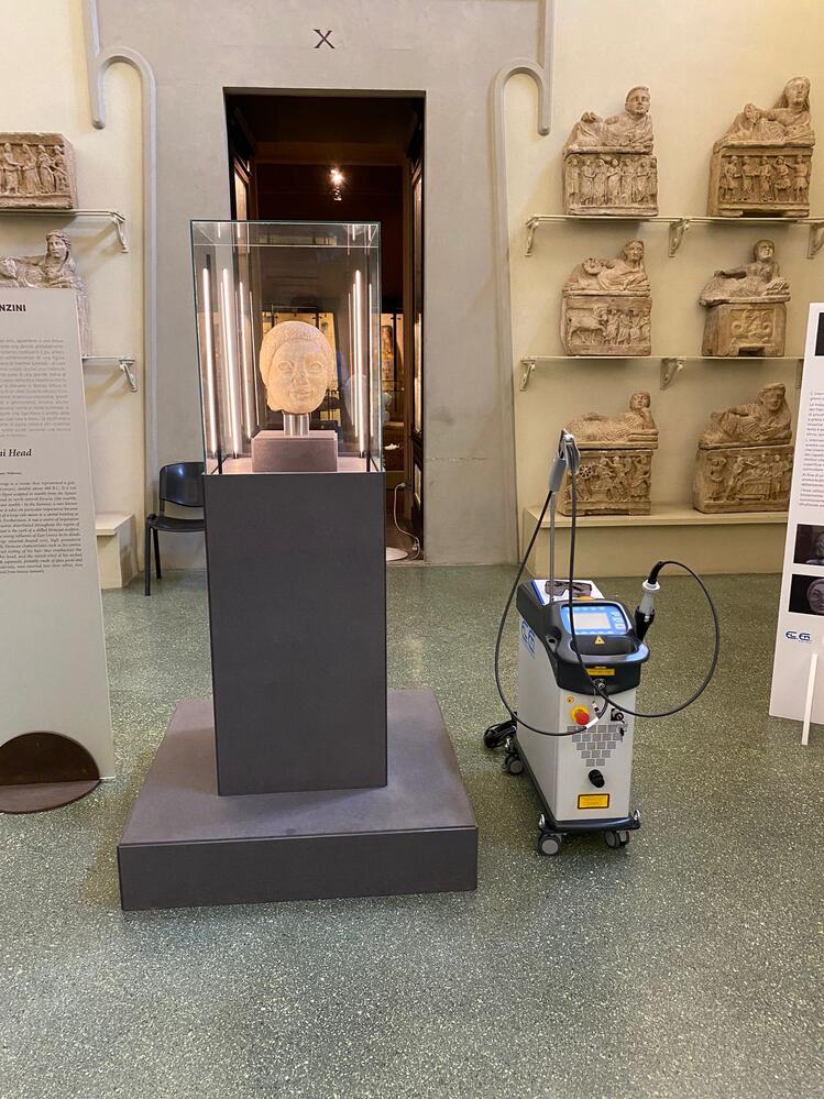 La donazione al Museo Archeologico di Firenze del laser Eos 1000, il cui intervento consente di trattare ed eliminare le incrostazioni calcaree e di altro tipo senza minimamente intaccare le superfici antiche (o comunque di fermarsi in prossimità di queste, nel caso di superfici antiche danneggiate o degradate), consentirà di operare anche su altre opere in marmo, alabastro e pietra dello stesso Museo, quali ad esempio le numerose urnette etrusche con raffigurazioni mitologiche e funerarie scolpite sulla fronte e sul coperchio.