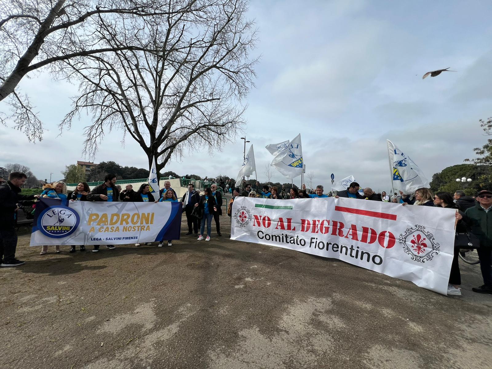 Firenze, 17 marzo 2024- Si è svolta questa mattina l’iniziativa della Lega Salvini Firenze al Parco delle Cascine, tra decine di iscritti tutti con la maglietta di Susanna Ceccardi candidata alle europee, tanti i passanti che si fermavano incuriositi, o chi voleva semplicemente aderire. Dalle 10:00 è stata avviata la raccolta firme per chiedere la recinzione del parco lungo tutto il suo perimetro, poco dopo il gruppo ha sfilato fino alla fermata della Tramvia Monni, teatro spesso di fatti di cronaca, con uno striscione recante “Padroni a casa nostra” e “Stop al degrado” del Comitato Fiorentino. Presenti gli eletti della Lega in Comune e nei quartieri, ma anche tanti iscritti e dirigenti del Carroccio provenienti dalla Provincia.