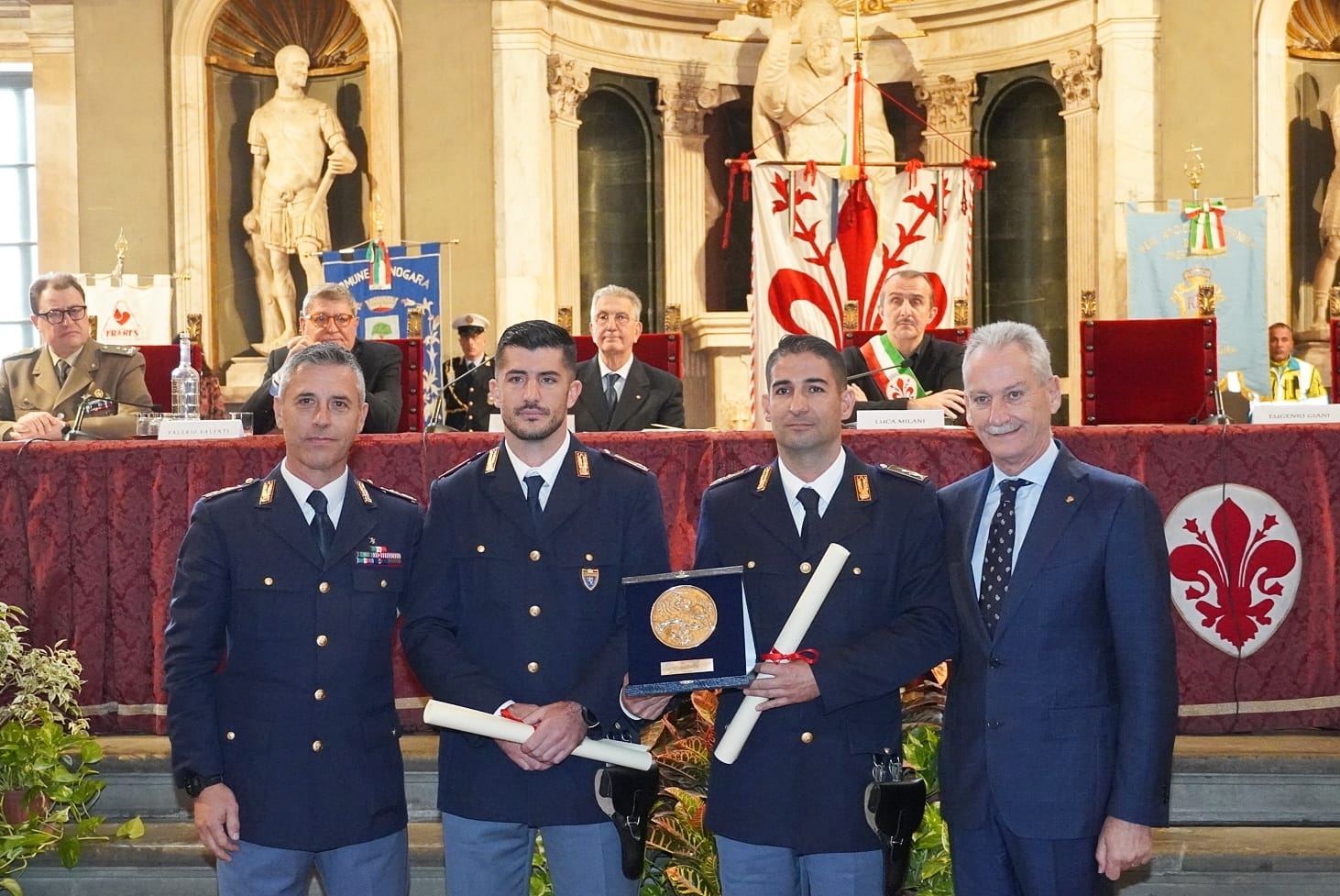Questa mattina il premio, che rappresenta una delle onorificenze più significative della regione Toscana, è stato consegnato anche a due poliziotti, protagonisti di un eroico gesto di coraggio, purtroppo però senza lieto fine. Ieri mattina il Questore Maurizio Auriemma ha ricevuto i due poliziotti sardi con i quali si è voluto personalmente congratulare, elogiando proprio il loro coraggio, l’altruismo, la determinazione, il forte senso del dovere e il l’amore disinteressato per la vita umana che hanno indubbiamente dimostrato con il loro gesto all’insegna dei valori propri della Polizia di Stato.