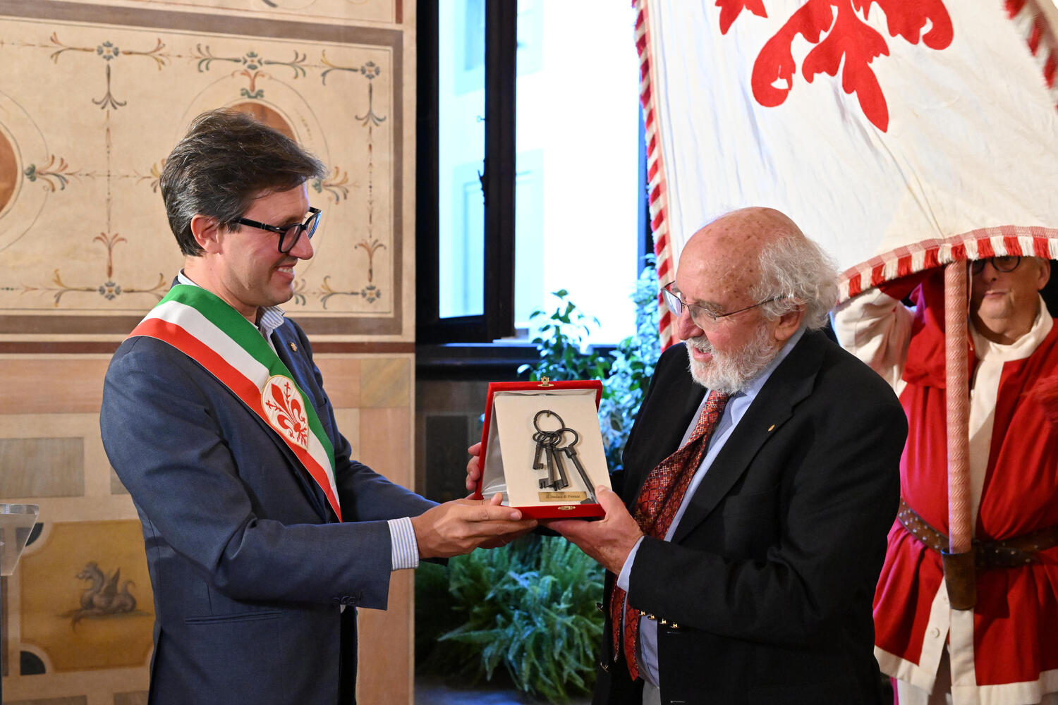 Chiavi della città al professor Michel Mayor, Premio Nobel per la fisica nel 2019. La cerimonia di consegna, da parte del sindaco Dario Nardella, della riproduzione fedele delle chiavi delle antiche porte della città si è tenuta in Sala di Lorenzo a Palazzo Vecchio.