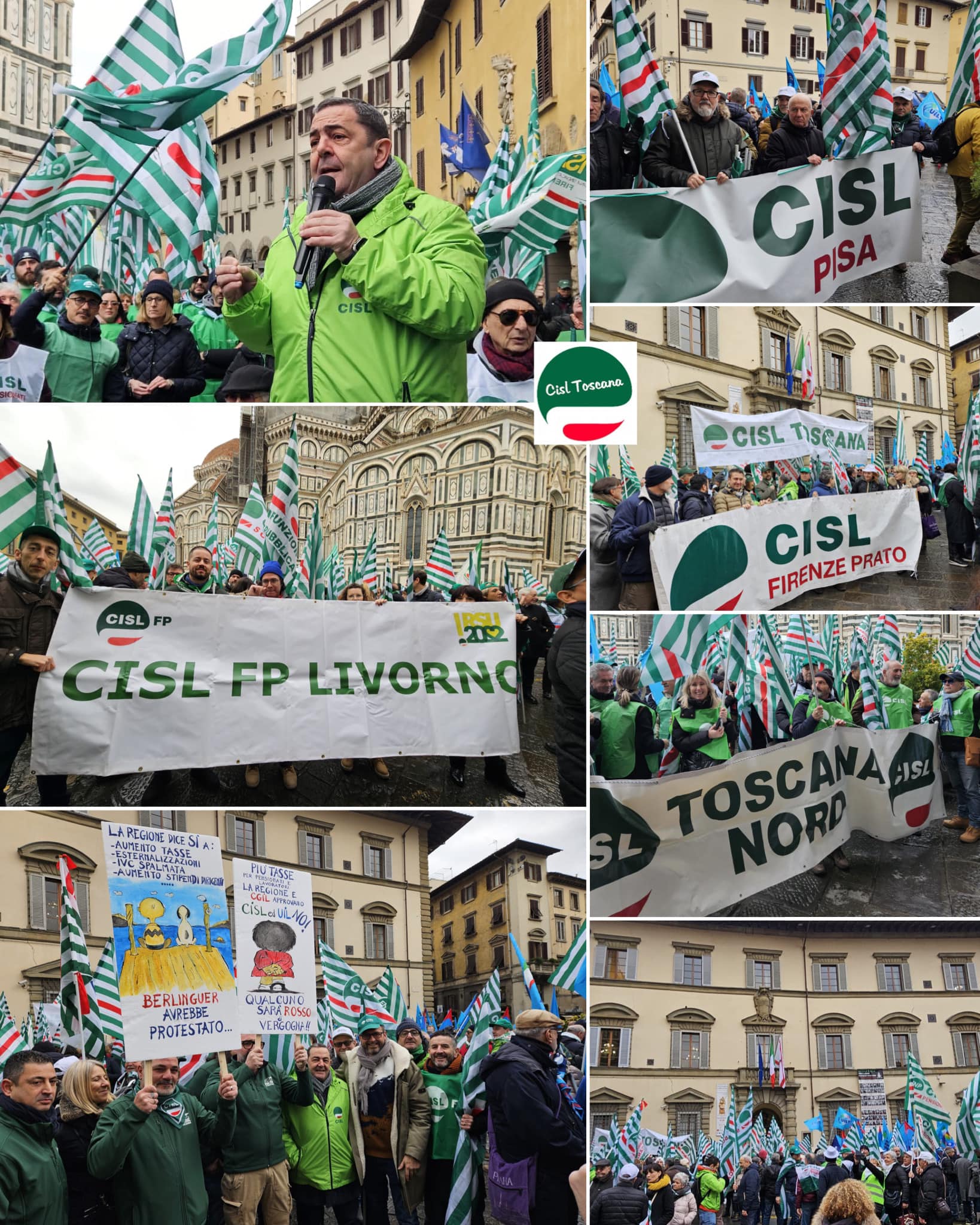 In corso a Firenze, in piazza Duomo davanti alla sede della Regione Toscana, una manifestazione regionale di Cisl e Uil sui temi della sanità e dell’imposizione fiscale regionale. Un 'no' forte all'aumento dell'addizionale Irpef regionale, espresso in primis dal segretario regionale Cisl Toscana, Ciro Recce: "L'aumento dell'addizionale Irpef è la goccia che ha fatto traboccare il vaso. Non ne passiamo più di queste scelte. O la Regione Toscana cambia strada o andremo avanti nella nostra mobilitazione", ha detto tra l'altro.