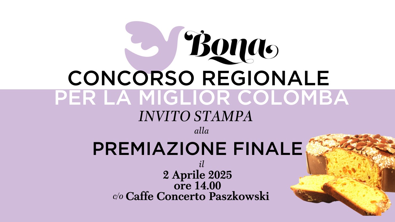 Si avvicina la Pasqua e manca sempre meno alla premiazione del concorso regionale BONA, promosso dal Festival delle Pasticcerie e Casa della Nella, che designerà la miglior colomba artigianale. Due le categorie del concorso: colomba tradizionale, che premia il rispetto per la ricetta tradizionale del dolce simbolo della Pasqua, e creativa, che premia, invece, la capacità di rinnovare la tradizione, una capacità tutta artigiana; in entrambe le categorie verranno designati primo, secondo e terzo classificato.