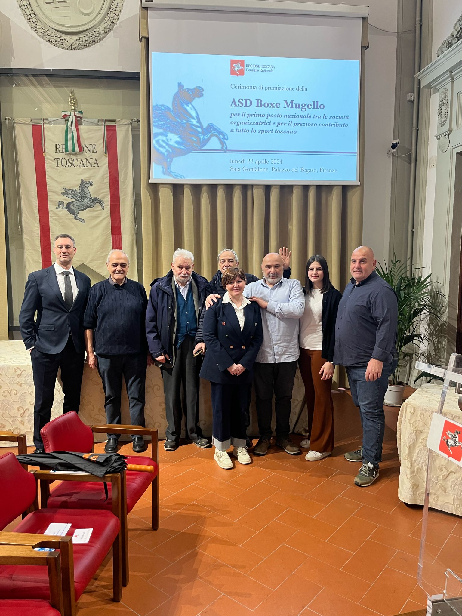 Firenze –Una coppa del Consiglio regionale alla ASD Boxe Mugello per il primo posto nazionale tra le società organizzatrici e per il prezioso contributo a tutto lo sport toscano. È stato il presidente dell’Assemblea toscana, questa mattina, lunedì 22 aprile, nella sala del Gonfalone di palazzo del Pegaso, a consegnare il riconoscimento al presidente del sodalizio sportivo Claudio Cantini.