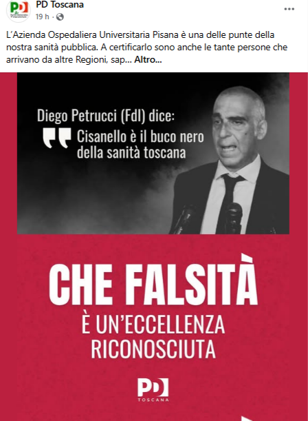 Queste le mie parole testuali durante una trasmissione andata in onda su Toscana TV: sono diventato consigliere comunale a Pisa la prima volta nel 2003 si parlava del trasferimento dell’ospedale dal Santa Chiara a Cisanello oggi nel 2025 sono in commissione sanità del Consiglio regionale della Toscana si parla ancora di quello!