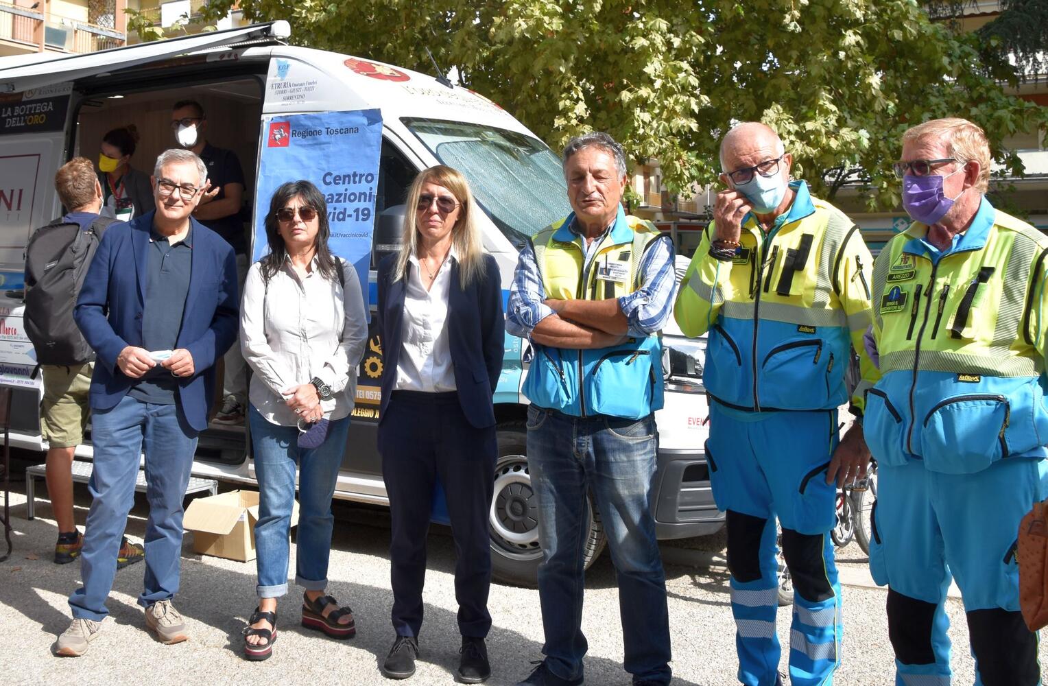 Presenti stamani in piazza anche la Direttrice di Confesercenti, Valeria Alvisi ("un'iniziativa che conferma l'attenzione, in tema vaccini, data agli imprenditori del commercio e ai loro dipendenti") e la vice Direttrice di Confcommercio, Catiuscia Fei ("sta diminuendo la percentuale di operatori e dipendenti che non vogliono fare il vaccino. Anche con iniziative come questa vogliamo contribuire alla massima diffusione della vaccinazione"). In piazza Giotto anche Marco Feri, responsabile medico della Misericordia di Arezzo.La prossima settimana, d'intesa con Cna e Confartigianato, il camper sarà nelle zone artigianali della provincia: il 4 ottobre a Sansepolcro, il 5 a Bibbiena, il 6 a Monte San Savino, il 7 a Camucia, l’8 di fronte alla sede provinciale Cna di Arezzo e il 9 davanti a quella di Confartigianato ancora ad Arezzo.