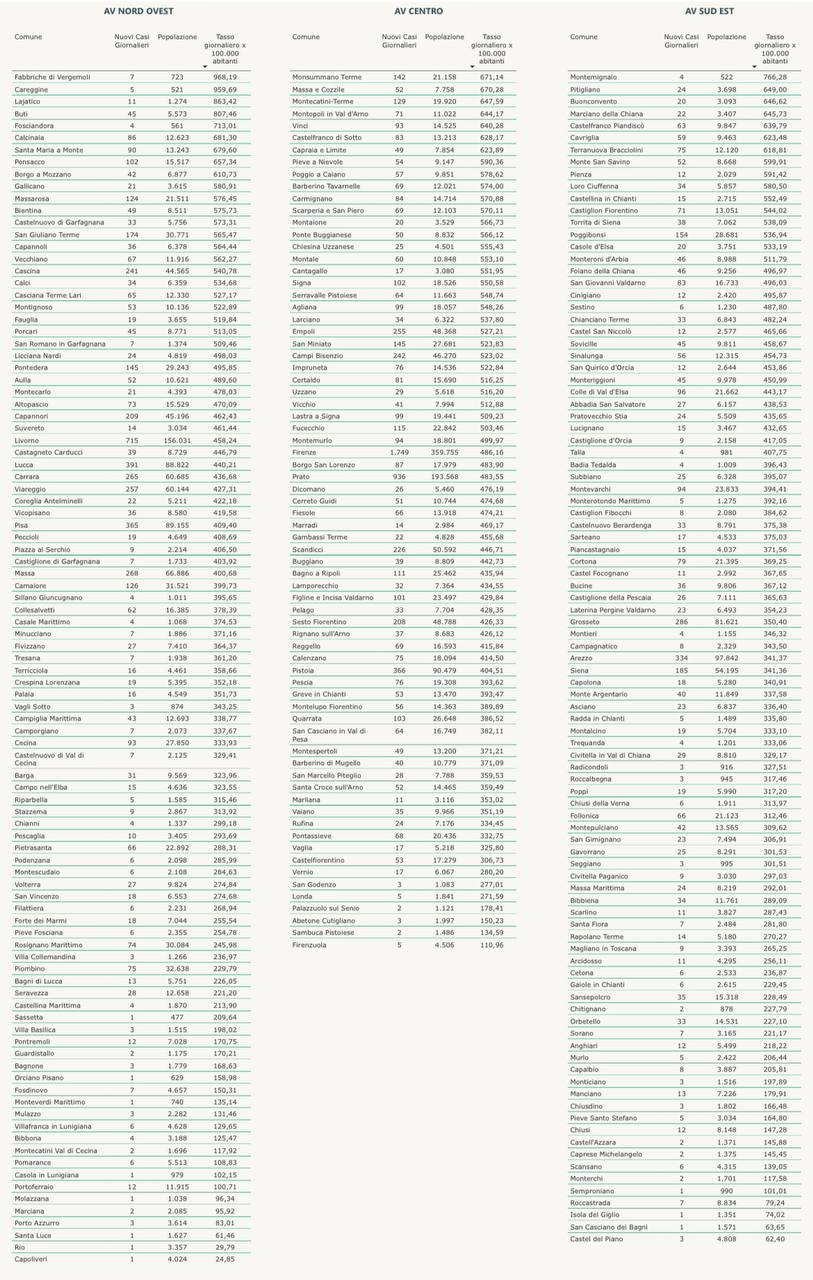 A Firenze i nuovi casi sono 1749.