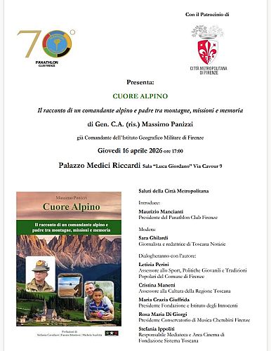 Giovedì 16 aprile 2026 ore 17.00, presso Palazzo Medici Riccardi Sala "Luca Giordano" via Cavour 9 a Firenze, il Generale di Corpo d'Armata Massimo Panizzi, già comandante dell'Istituto Geografico Militare, presenterà il suo libro “Cuore Alpino. Il racconto di un comandante alpino e padre, tra montagne, missioni e memoria”.