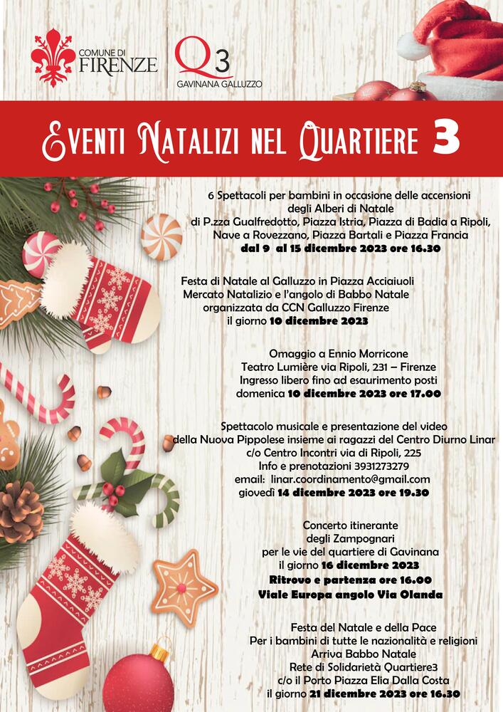 In occasione delle feste natalizie, a partire dal 9 dicembre, nel Quartiere 3 ci saranno tanti momenti di socialità e di coinvolgimento per grandi e piccini.