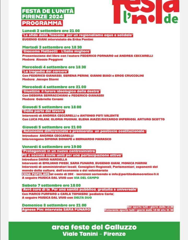 GALLUZZO (FIRENZE) - Il Galluzzo si appresta ad ospitare la Festa de l'Unità di Firenze, a partire da lunedì 2 settembre fino a domenica 8.