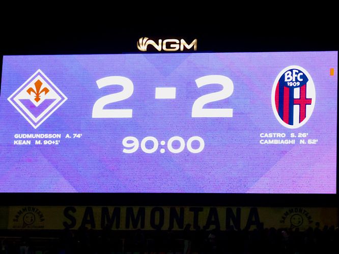 NOTE: 36' Gosens (F), 39' Freuler (B), 57' Gudmundsson (F), 71' Holm (B), 84' Rowe, 95' Dzeko (F), 95' Lucumi (B); espulso 83’ Holm ((B). Angoli 6-5 Bologna. Spettatori 19.445