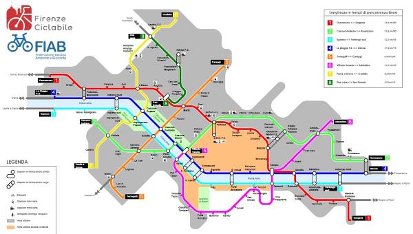 La Bicipolitana è un progetto di FIAB Firenze Ciclabile, adottato dall'amministrazione comunale e in via di sviluppo. La linea rossa è una linea interamente realizzata: si può attraversare tutta la città senza mai uscire da una pista ciclabile.