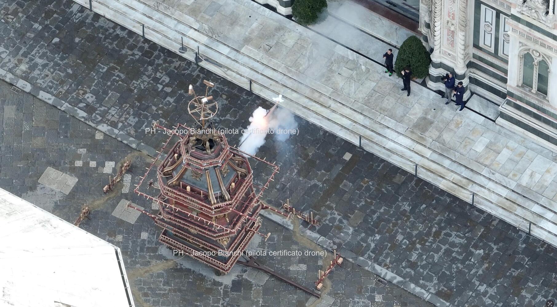 Nella domenica di Pasqua è tornato l'appuntamento con lo “Scoppio del Carro”, la più antica tradizione popolare fiorentina. La manifestazione laico-religiosa si è svolta oggi in piazza del Duomo, riempiendo il centro storico di turisti e curiosi.