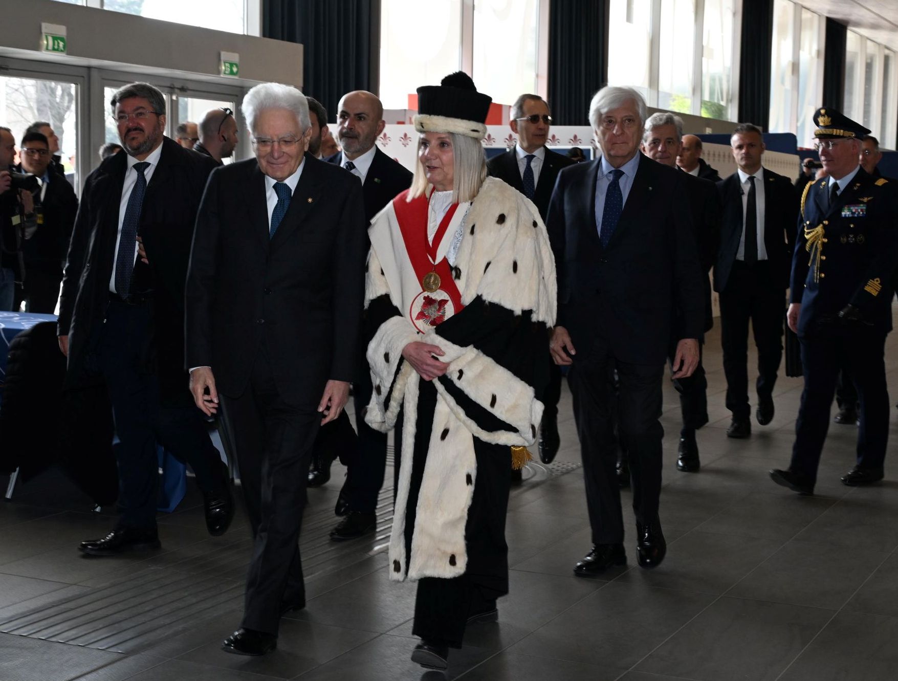 Durante la cerimonia, aperta dall'inno italiano e dall'inno europeo eseguiti dal Coro universitario accompagnato da un quartetto dell'Orchestra dell'Ateneo, sono intervenuti anche il direttore del Dipartimento di Scienze politiche e sociali Alessandro Chiaramonte e il presidente della Scuola di Scienze politiche “Cesare Alfieri” Andrea Lippi. La presidente del corso di laurea in Politica, Istituzioni e Mercato Maria Grazia Pazienza ha pronunciato la laudatio, nella quale ha ricordato che “il Presidente Mattarella ha saputo tenere saldi i valori costituzionali esortando costantemente a coniugare la necessità di decisioni informate e meditate, con il rispetto delle garanzie democratiche e del ruolo del Parlamento, quale sede privilegiata del confronto e della costruzione ponderata delle scelte pubbliche”.