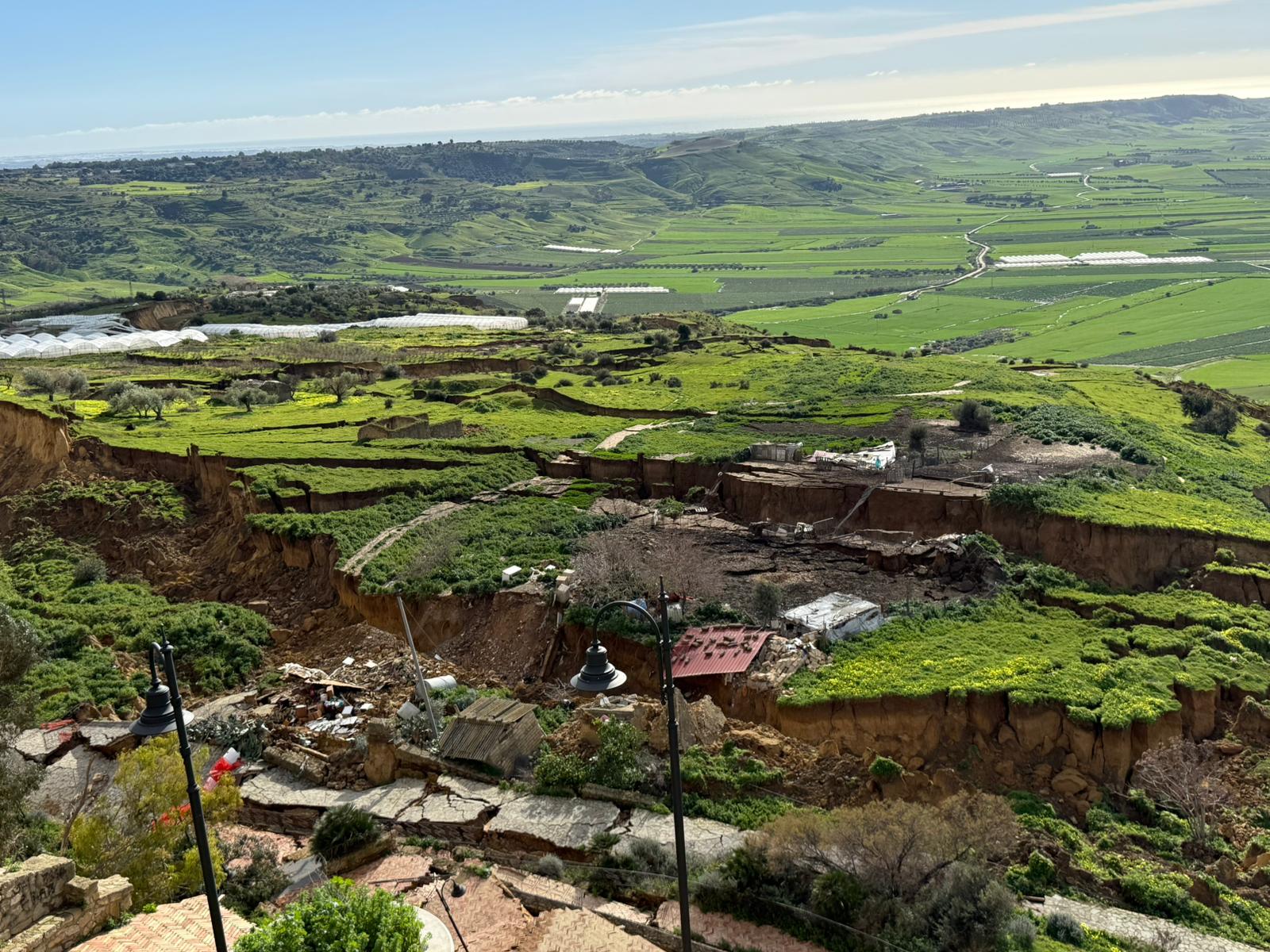 “Giunti sul posto insieme al capo del Dipartimento della Protezione Civile – prosegue – ci siamo trovati di fronte a un fenomeno di proporzioni enormi, certamente una delle più grandi frane che io abbia mai visto in Italia in oltre trent’anni di carriera. Le stime preliminari parlano di molte decine, se non addirittura centinaia di milioni di metri cubi di materiale in movimento. Questa massa ha generato una scarpata imponente proprio sotto l’abitato di Niscemi, una situazione che mette seriamente a rischio la stabilità delle prime file di abitazioni del centro abitato”.
