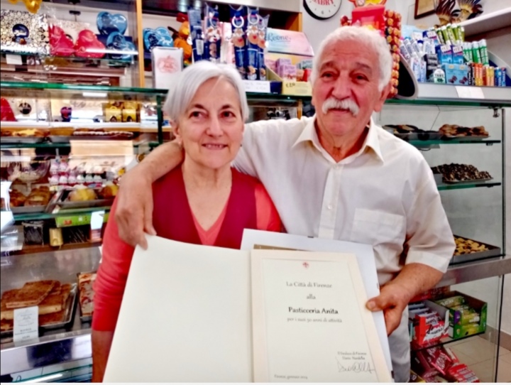 L'assessore Bettarini consegnando il riconoscimento ha usato bellissime parole per Gioni e Anita, sottolineando che queste attività radicate nel territorio costituiscono un bene prezioso per una città storica e legata alle tradizioni come Firenze.