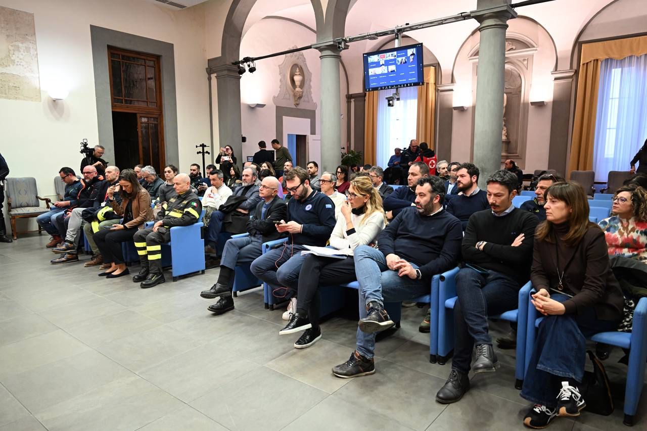 Tanti sindaci e amministratori, donne e uomini della Protezione civile, dei vigili del fuoco, del volontariato. La sala Pegaso di Palazzo Strozzi Sacrati, sede della presidenza della Regione Toscana è piena per l’incontro con i vertici della Protezione civile nazionale. Un incontro di cui il presidente Eugenio Giani ringrazia, per la tempestività, il capo del Dipartimento nazionale, Fabio Ciciliano.