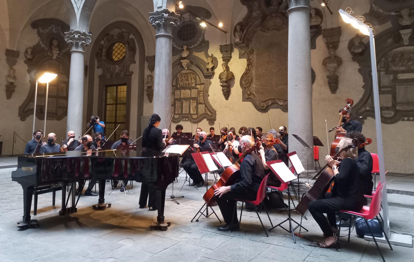 Ieri sera il pubblico l’ha vista alla guida dell’Orchestra da Camera Fiorentina nel Cortile di Michelozzo a Palazzo Medici Riccardi. Una conduzione assolutamente convincente, in particolare nella sinfonia numero 5 in si maggiore di Franz Schubert, già nel repertorio dell’orchestra.