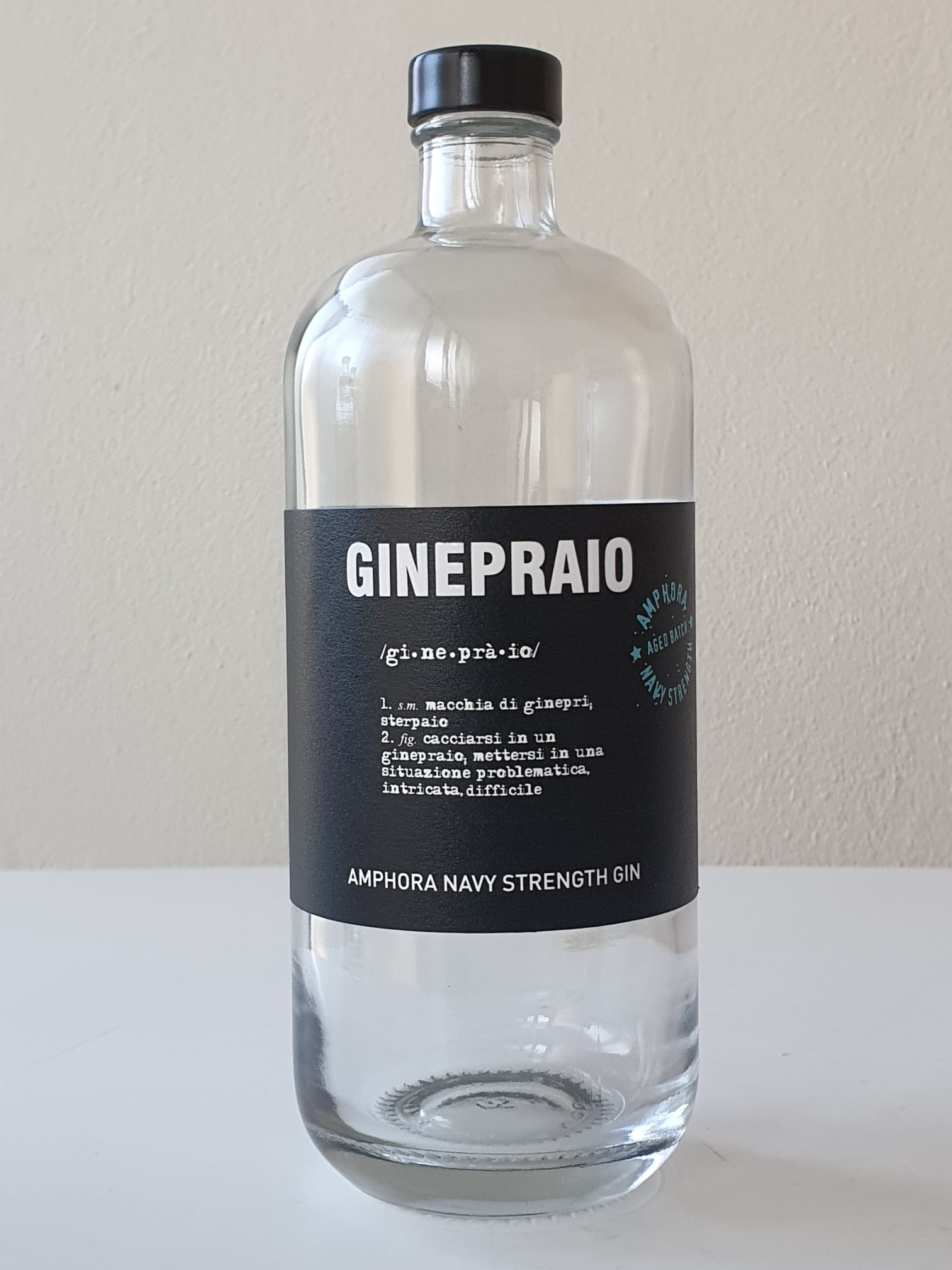 A differenza del primogenito, Ginepraio Amphora Navy Strenght – insignito della Medaglia d'Oro all'International Wine & Spirits Competition IWSC 2021, della Medaglia d'Oro allo Spirit Selection 2020 del Concours Mondial de Bruxelles 2020 e già Medaglia d'Oro al China Wine & Spirits Awards 2019 - viene tagliato a 57% contro i 45% del primo e viene lasciato riposare circa sei mesi all'interno di anfore di cocciopesto da 370 litri circa.