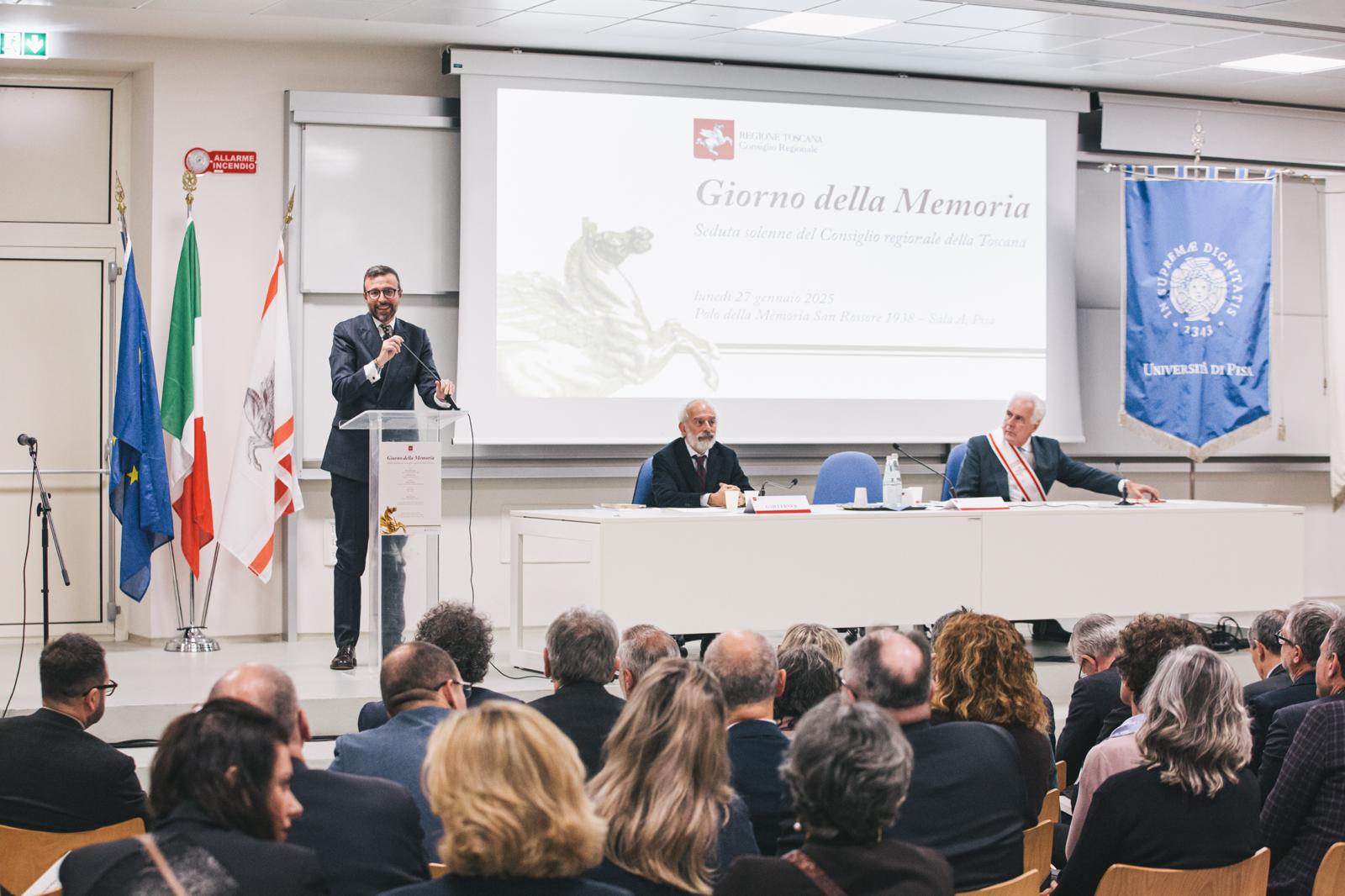 Poco dopo, si è tenuta la seduta solenne del Consiglio regionale, che si è aperta con i saluti del Rettore dell’Università di Pisa, Riccardo Zucchi, ai quali sono seguiti gli interventi del presidente Antonio Mazzeo, del giornalista Gad Lerner, che ha paragonato il sionismo quale versione ebrea del fascismo e del nazismo.