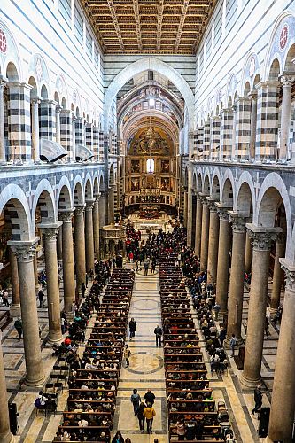 Una Cattedrale gremita di pisani e turisti ha salutato l’arrivo del 2027 in stile pisano con un lungo applauso. Come da tradizione allo scoccare del mezzogiorno il raggio di sole ha illuminato la mensolina a forma di uovo sul pilastro accanto al celebre pergamo di Giovanni Pisano. Poi è seguita la formula di rito letta dal sindaco di Pisa Michele Conti: “A maggior gloria di Dio, e invocando l’intercessione della Beata Vergine Maria e di San Ranieri nostro Patrono, salutiamo l’anno 2027”.