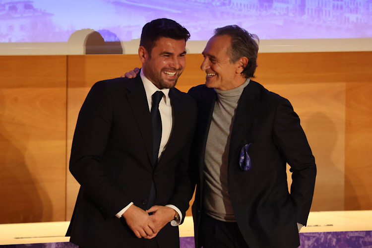 Tra i principali protagonisti, Adrian Mutu premiato sul palco con mister Cesare Prandelli.