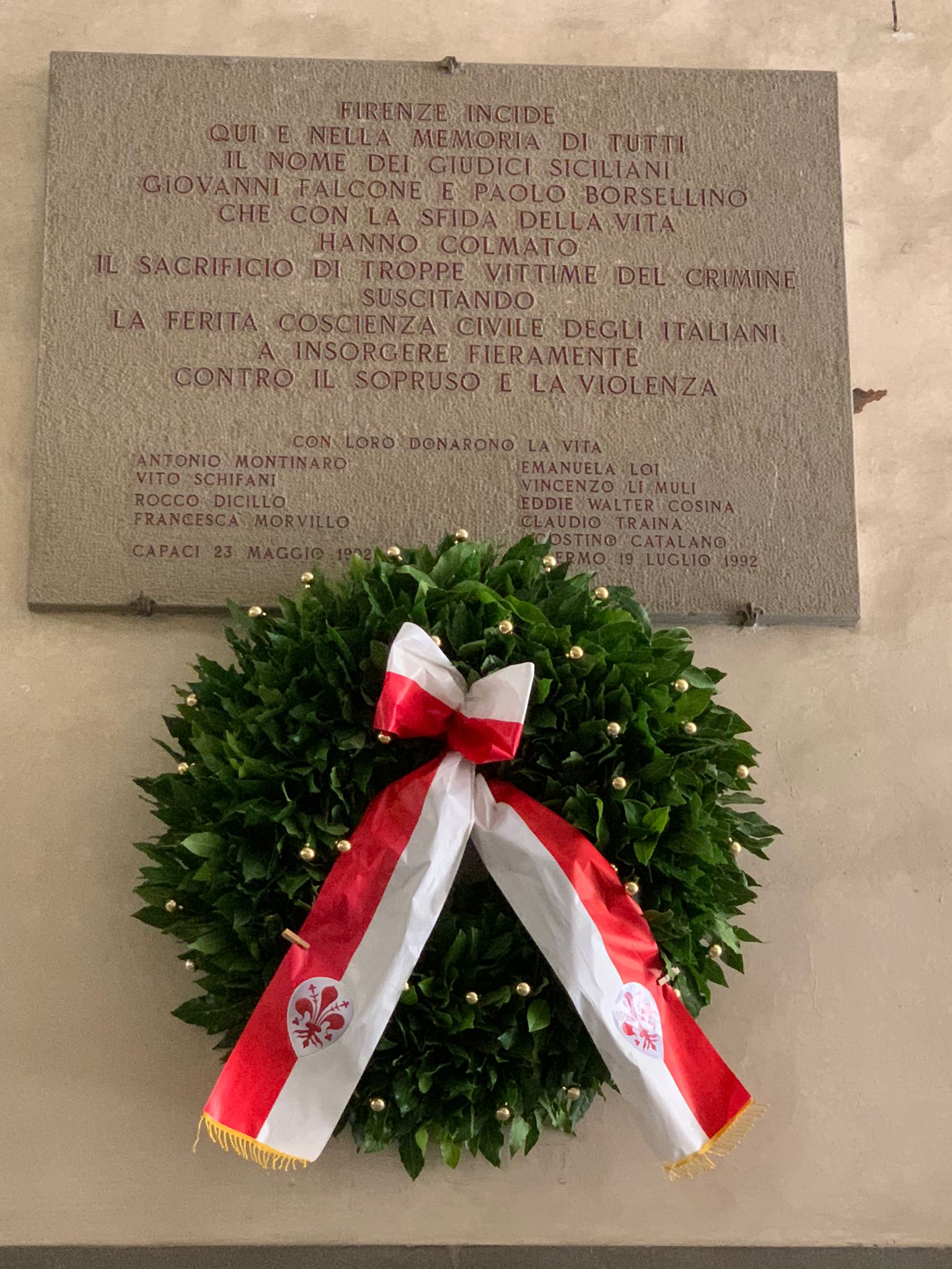 A Firenze è stata apposta una corona d’alloro sulla lapide che ricorda Paolo Borsellino nel cortile di Palazzo Vecchio.