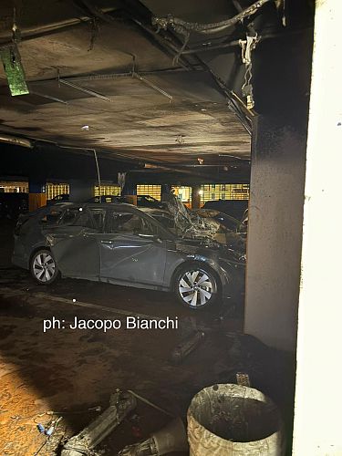 Un incendio si è sviluppato oggi pomeriggio al terzo piano del parcheggio pubblico di piazza Alberti. Due le autovetture avvolte dalle fiamme. L'intervento dei Vigili del fuoco ha impedito il propagarsi delle fiamme. Ma per precauzione la struttura pubblica è stata temporaneamente chiusa, per poter accertare l'entità dei danni.