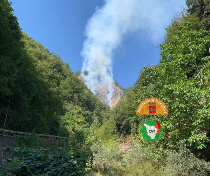 Incendio in corso a Colonnata, frazione del comune di Carrara, sulle Apuane. Al momento la zona è inaccessibile da terra. Le fiamme sono partite in prossimità di una cava e seguendo le forte pendenza si sono rapidamente allargate sulla montagna. Un elicottero della flotta regionale sta operando con sganci di contenimento per evitare la propagazione del fronte oltre i crinali dove il bosco è più fitto. Squadre di volontariato antincendi boschivi e operai forestali della Unione Comuni Lunigiana sono giunte sul posto.