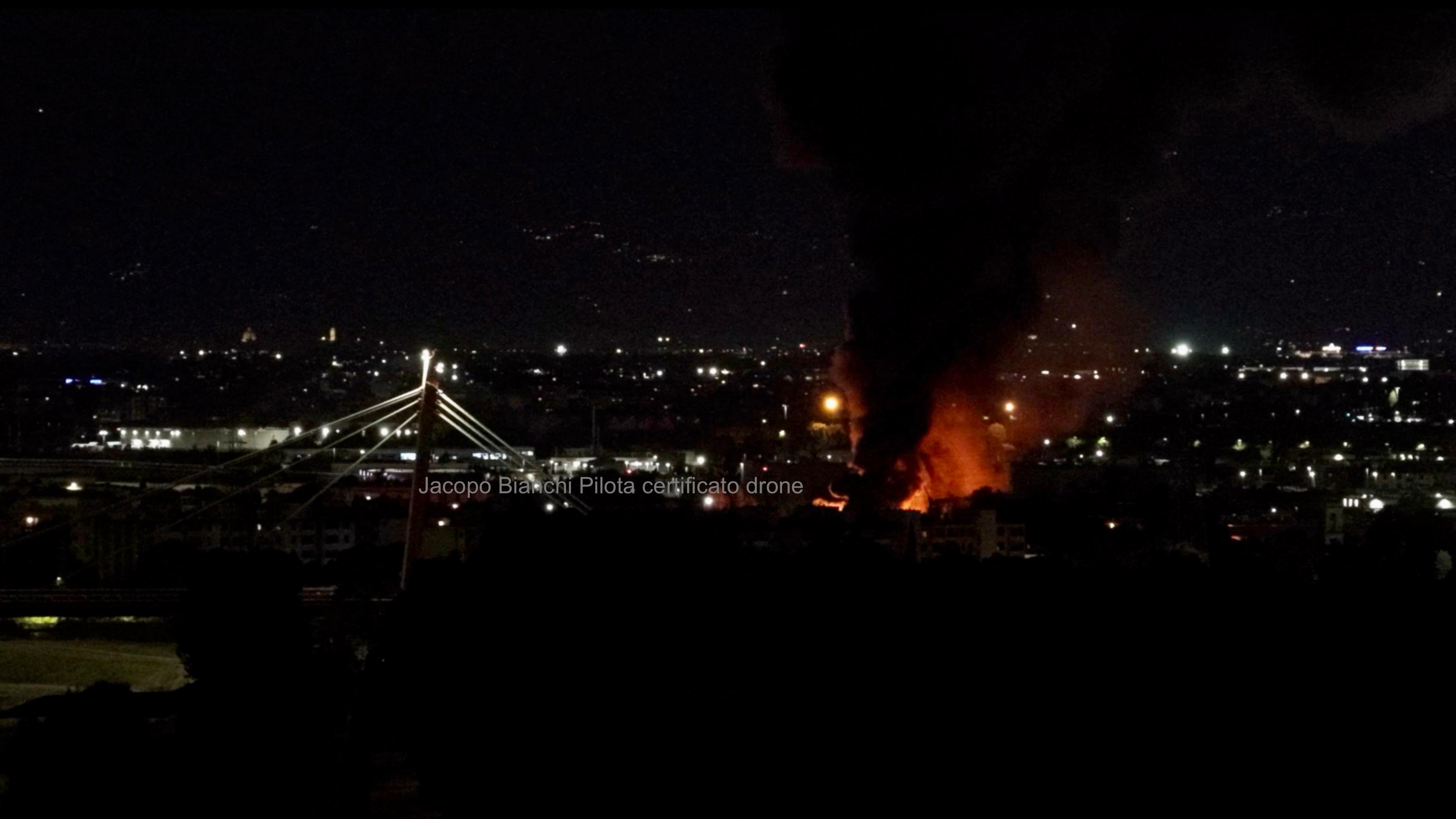 Il bagliore e il fumo del violento incendio sviluppatisi nello stabilimento erano visibili da molto lontano. Le cui spettacolari immagini sono state realizzate da Jacopo Bianchi, pilota certificato di drone.