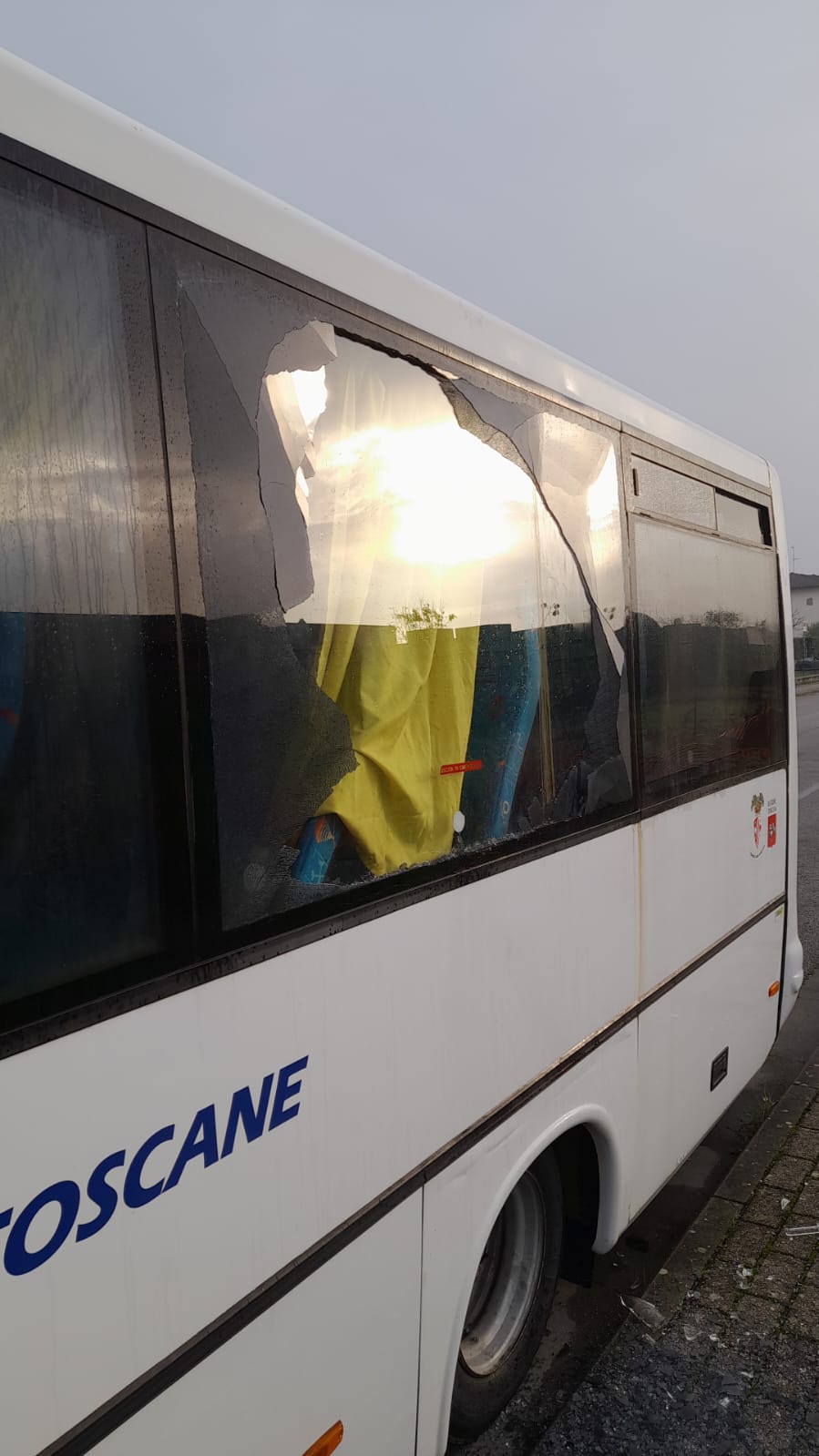 Autolinee Toscane ha presentato formale denuncia per danneggiamenti presso la Stazione dei Carabinieri di Borgo San Lorenzo, dopo aver trovato un proprio mezzo con un vetro rotto. Il mezzo, che era in sosta notturna in Viale del Progresso, nella località Rabatta e Mattagnano, è stato trovato questa mattina dal conducente con il vetro laterale rotto, probabilmente a causa del lancio di una bottiglia o bicchiere di vetro.
