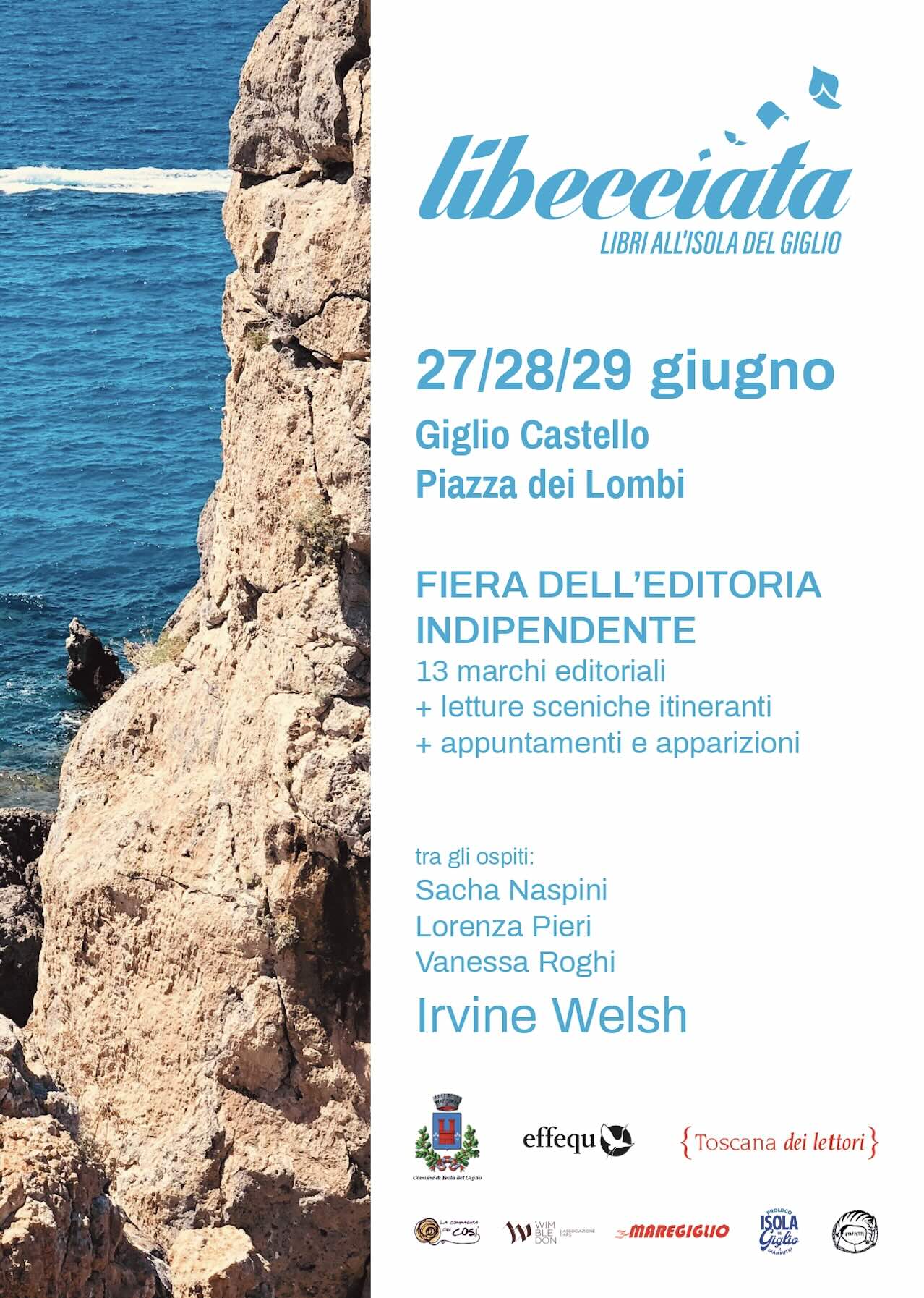 Isola del Giglio, 17.06.2025 -Tre giorni di incontri con scrittori e scrittrici, una fiera dell’editoria con 13 case editrici indipendenti tra libri e degustazioni enoletterarie, presentazioni, letture sceniche, yoga sul filo di pagine e parole e un ospite speciale: l’autore scozzese Irvine Welsh, celebre per il romanzo “Trainspotting”. Dal 27 al 29 giugno sull’Isola del Giglio nasce Libecciata, il festival di libri, letture e narrazioni organizzato da Associazione Wimbledon APS in partnership con effequ,con il patrocinio e il contributo del Comune dell’Isola del Giglio, in collaborazione con Compagnia dei Cosi, con la partecipazione della Pro Loco Isola del Giglio, main sponsor Maregiglio,nell’ambito dei progetti Toscana dei lettori e Staffette.