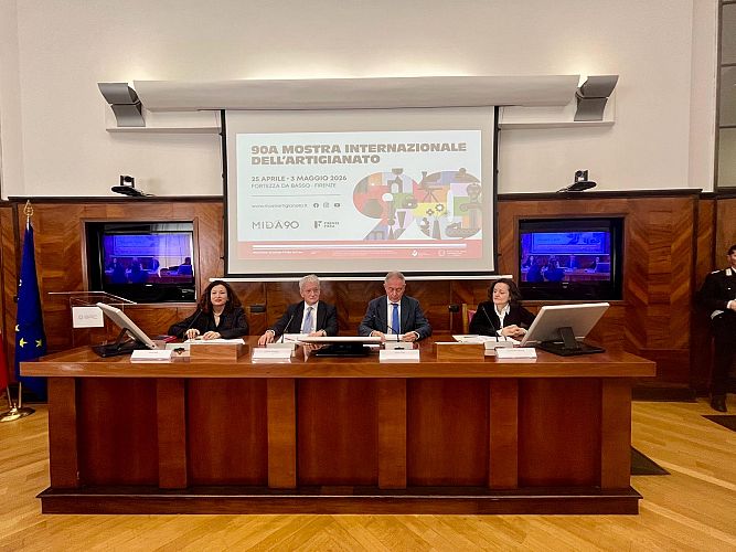 Firenze, 22 aprile 2026. È stata presentata stamani al Teatrino Lorenese della Fortezza da Basso MIDA90, la 90esima edizione della Mostra Internazionale dell’Artigianato che, organizzata da Firenze Fiera in collaborazioni con le principali istituzioni e associazioni di categoria, aprirà i battenti sabato 25 aprile e proseguirà fino a domenica 3 maggio.