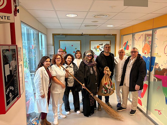 La Befana “Edita” non ha fatto mancare il proprio sostegno e il suo sorriso, consegnando piccoli doni ai bambini ricoverati e regalando loro attimi di leggerezza e normalità, fondamentali in un contesto delicato come quello ospedaliero. È stata accolta, insieme a una delegazione della CISL FP, dal personale della direzione sanitaria, dalla direttrice di presidio Lucilla Di Renzo, dal direttore di Pediatria Rino Agostiniani, dalla coordinatrice infermieristica Stefania Magnanensi e dal personale sanitario del reparto.