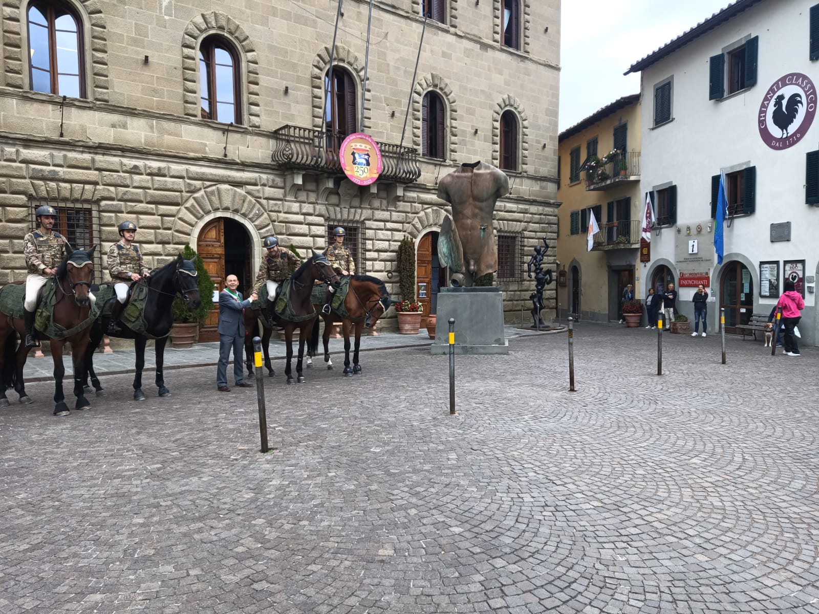 Per l’occasione i militari hanno incontrato la comunità di Greve in Chianti, rappresentata dal sindaco Paolo Sottani, insieme ad alcuni concittadini presenti per l’occasione, al fine di esprimere la loro vicinanza ai valori della Forza Armata.