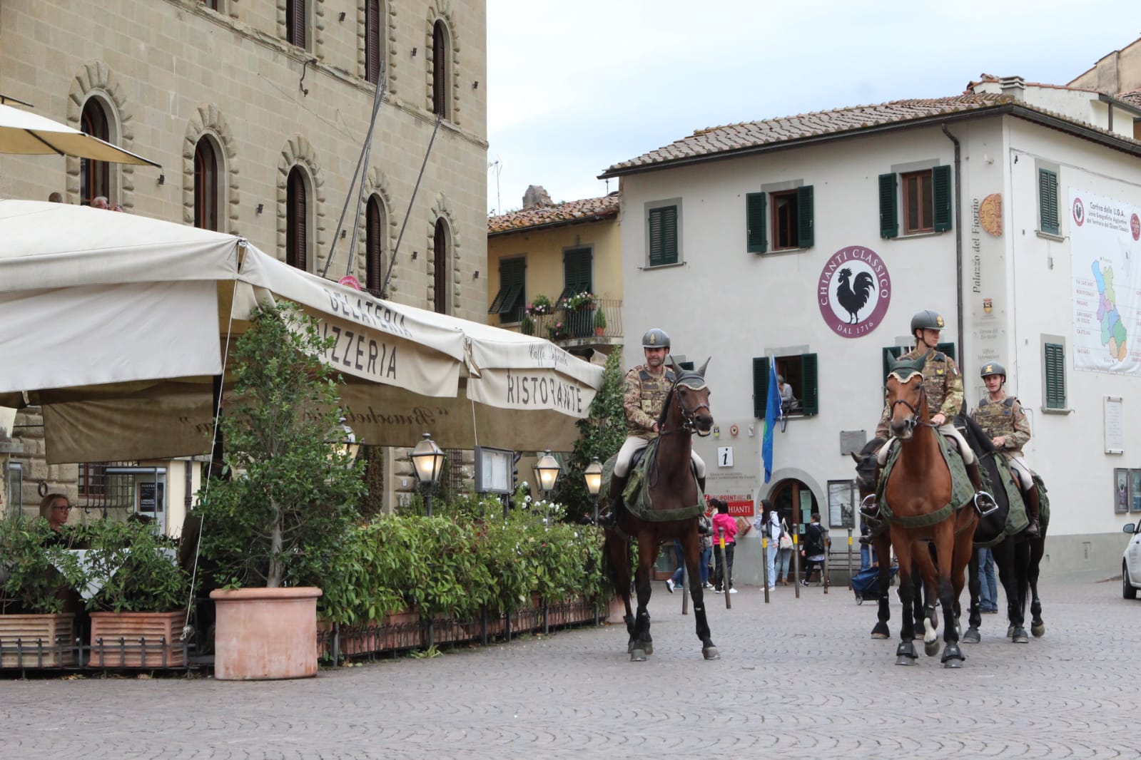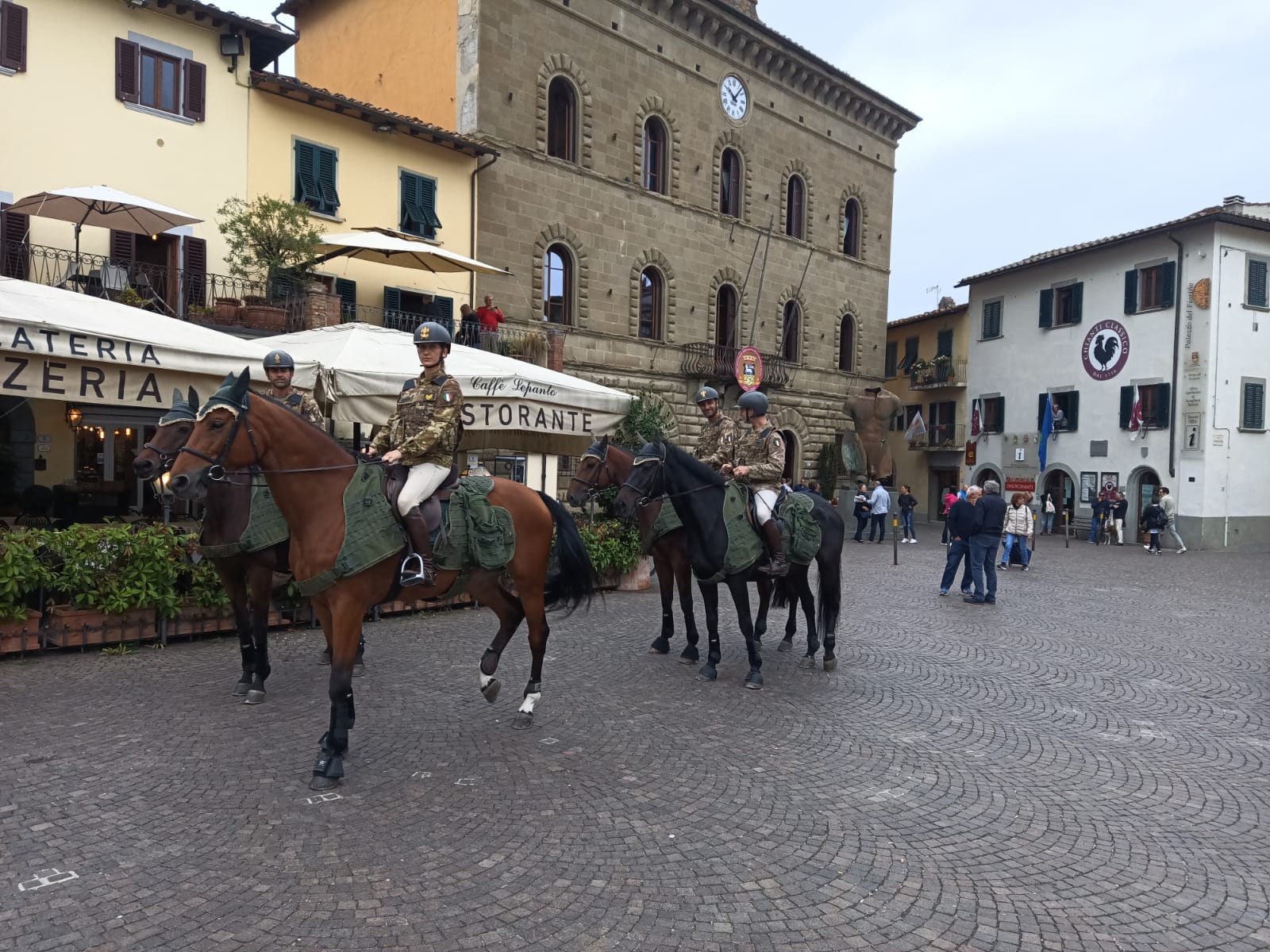 Nelle altre foto: momento del passaggio dell'Esercito Italiano da Greve in Chianti. La comunità di Greve in Chianti saluta cavalli e cavalieri