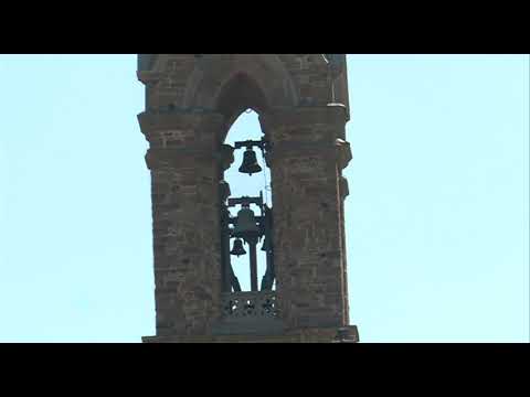 Firenze, 12 aprile 2020 –- Le campane della basilica di Santa Croce, insieme a quelle di tutte le chiese toscane, oggi a mezzogiorno hanno suonato a festa - amplificate dalla piazza deserta - come “segno di speranza e vicinanza a tutti i fiorentini e al Paese in questo momento di dolore e sofferenza”.
