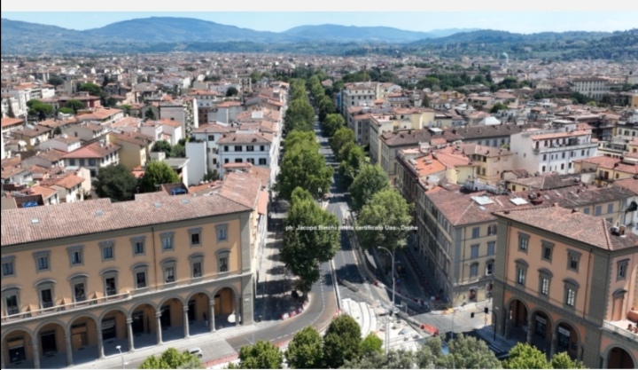 Nelle foto di Jacopo Bianchi Pilota certificato drone, una panoramica dello stato dei lavori tramvia in piazza della Libertà in questo weekend di agosto.