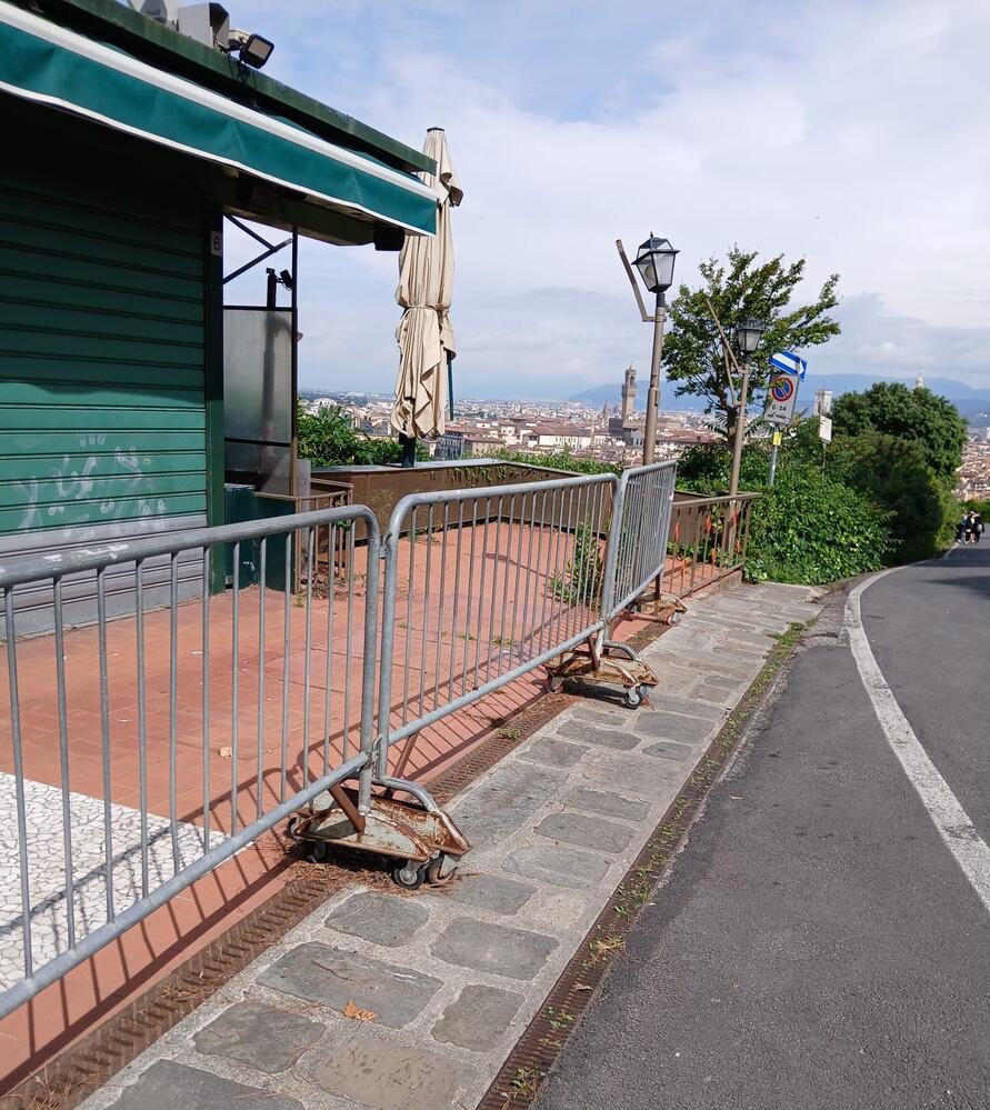 “Wow” esclama un turista americano mentre arriva nel piazzale Michelangelo e scavalca la catena che separa il parcheggio delle auto dallo spazio pedonale. Intravede la cattedrale e palazzo Vecchio tra le bancarelle che formano una barriera quasi impenetrabile ma il panorama è pur sempre mozzafiato e suscita stupore e meraviglia.