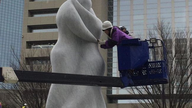 L'opera americana è stata realizzata con un composto di resine e polvere di marmo, mentre quella giapponese esclusivamente in marmo. Con la base è alta oltre 5 metri, e fa bella mostra nella piazza davanti alla stazione della nuova linea della metropolitana che collega la parte sud e la parte nord della città di Toyama. Il progetto è stato sollecitato soprattutto dai giovani cittadini. “Ho ricevuto da loro oltre 5.000 messaggi” ha raccontato Minako Yoshino a Nippon Tv Network Corporation nel programma News Every, che ha dedicato un lungo servizio all'installazione dell'opera d'arte soffermandosi sia sulla storia artistica di Yoshino, sia sui suoi lunghi mesi di lavoro a Carrara su quell'enorme blocco di marmo della Coop Gioia nel laboratorio della Cooperativa di scultori.