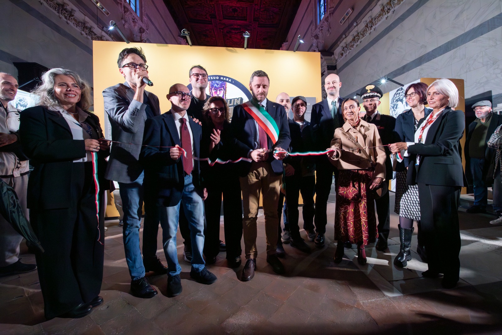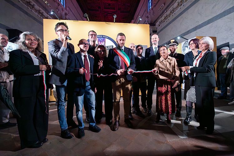 A tagliare il nastro il vicesindaco di Lucca Fabio Barsanti, la viceprefetto Stefania Trimarchi, l'amministratore Unico di Lucca Crea Nicola Lucchesi, il direttore di Lucca Comics & Games Emanuele Vietina, i curatori Alessandro Apreda e Guido Martini, con Enrico Croce di COAMIX Inc., insieme a Tommaso Galigani, portavoce dei Musei degli Uffizi.